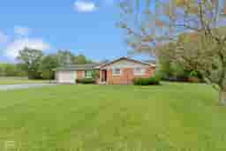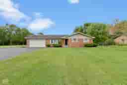 If you're looking for a well built full brick home on 1.67 acres w/workshop space or additional garage space, then you've found it! Well maintained ranch home offers newer HVAC ('20), water heater ('20), dimensional shingled roof, vinyl storm windows, all kitchen appliances + washer & dryer* Beautiful hardwood floors in the kitchen, dining room, hallway & baths* Crown molding, chairs & squares molding, chair rail & casement trim around doors adds a custom touch* Kitchen offers plenty of white cabinets & counter top space including an extended breakfast bar which opens into the dining rm* Brick backsplash highlights the kitchen w/great natural lighting + recessed lighting* From the dining room, walk out to your covered patio* Spacious 2 car attached finished garage w/great built in storage closets + pull down attic stairs w/attic storage* PLUS additional 2 car detached garage w/furnace great for additional cars, workshop, etc* Storage shed w/newer roof* Lots of additional parking space plus gravel area behind detached garage* Large open acreage to the south of the home great for play space & entertaining* The pond behind the home is NOT part of this property; see agent comments for more details* Immediate occupancy & ready for it's new owner.