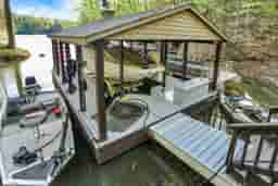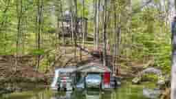 This is what you've been waiting for! This wooded, lake front property sits on 1.6 acres and has everything you need for full time or part time lake life. Nestled in the woods of Lamb Lake, this custom built home has been tastefully updated with modern style without losing the classic features that are timeless. This all brick home features a stunning main level with gleaming hardwood floors that have been recently refinished, custom woodwork throughout, and priceless views. The deck that spans the entire main level is accessible from the kitchen, or through the large, new sliding doors in the family room. The gourmet kitchen includes a full set of stainless appliances, beautiful granite tops, and a breakfast room with unique beam detail on the ceiling. The primary suite has a private deck, gas fireplace, sitting room, and a bathroom with high end updates that will not disappoint. There are two bedrooms upstairs that share a Jack and Jill bathroom, and there is also a large loft area for extra space. The walkout basement has tons of storage area for all your lake toys, a bonus room that could be transformed into a wine cellar, and offers a guest bedroom and a full bathroom. The gem of this property is its outdoor spaces and lake frontage! The freshly painted stairs meander down to the covered boat dock with lift and plenty of space for all your water toys, all tucked into a private cove. Spend your days fishing, boating, skiing, or floating, and spend your evenings enjoying one of the many outdoor spaces. This home is great for entertaining as well with room for parking and even more room for socializing and making memories. This one is ready for you to move in and immediately begin to enjoy lake life, just in time for this year's lake season!